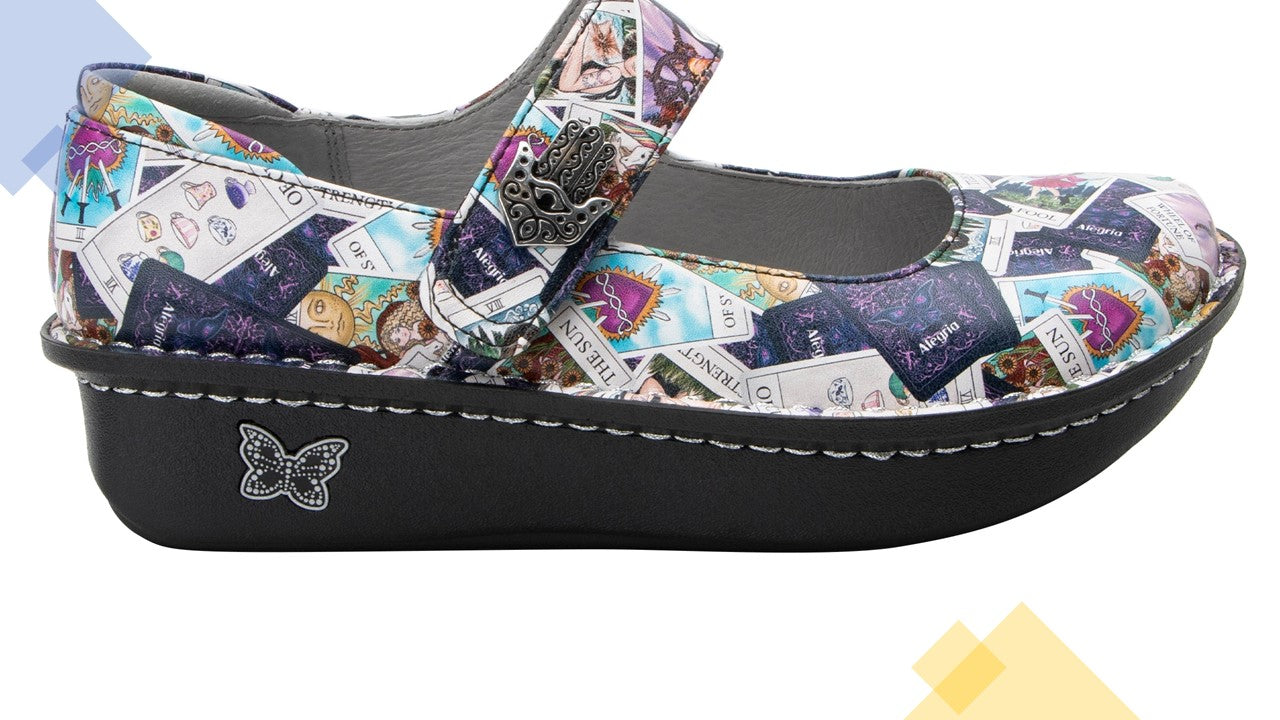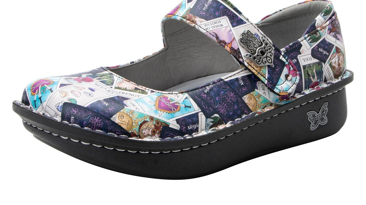 A timeless style with an Alegria twist, the Paloma is the perfect shoe for any occasion. This easy-fit Mary Jane features an interesting textured Mantle printed design on patent leather, ornamented with a unique button on the strap.