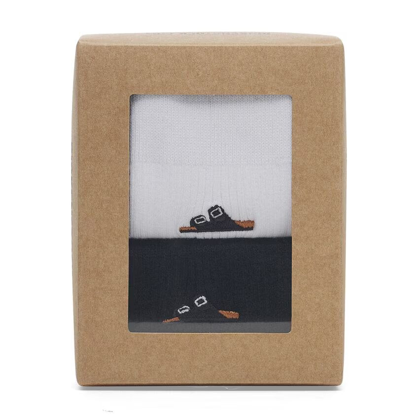 This set consists of two pairs of BIRKENSTOCK Cotton Ribbed socks. The ribbed structure prevents them from slipping down and makes them fit perfectly. The iconic Arizona sandal is embroidered on the outside. The pressure-free, elasticated cuff guarantees maximum comfort.