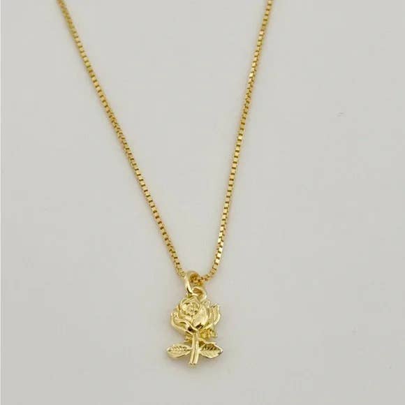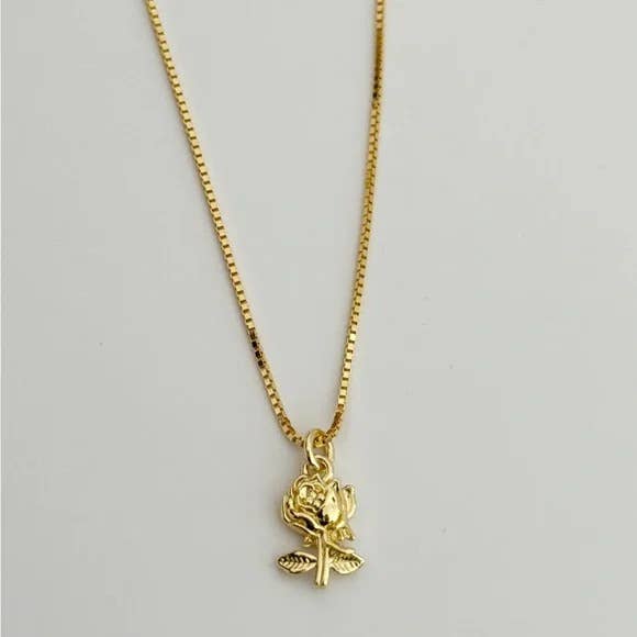 925 sterling silver gold vermeil plated dainty box chain featuring dainty rose pendant