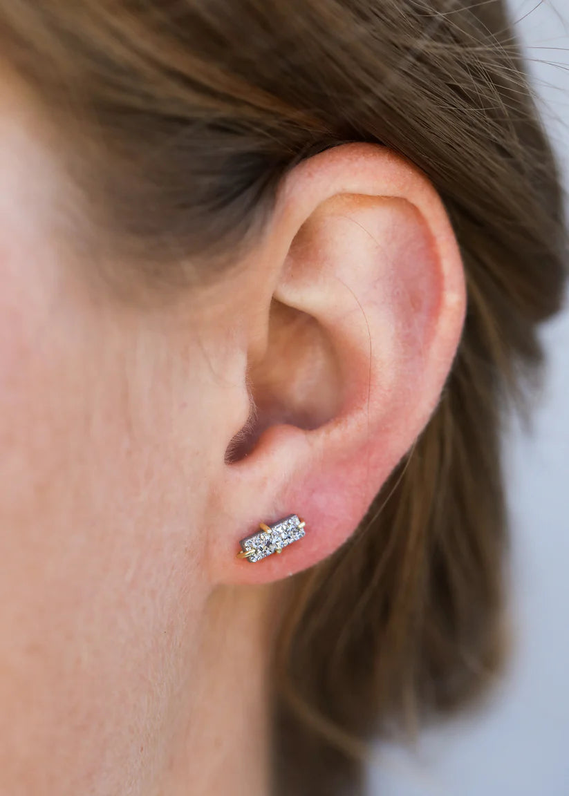 Natural druzy stone cut into shape and set in an 18k gold-plated prong earring over sterling silver, also known as 'vermeil.' Handmade. Nickel, lead, and brass-free.