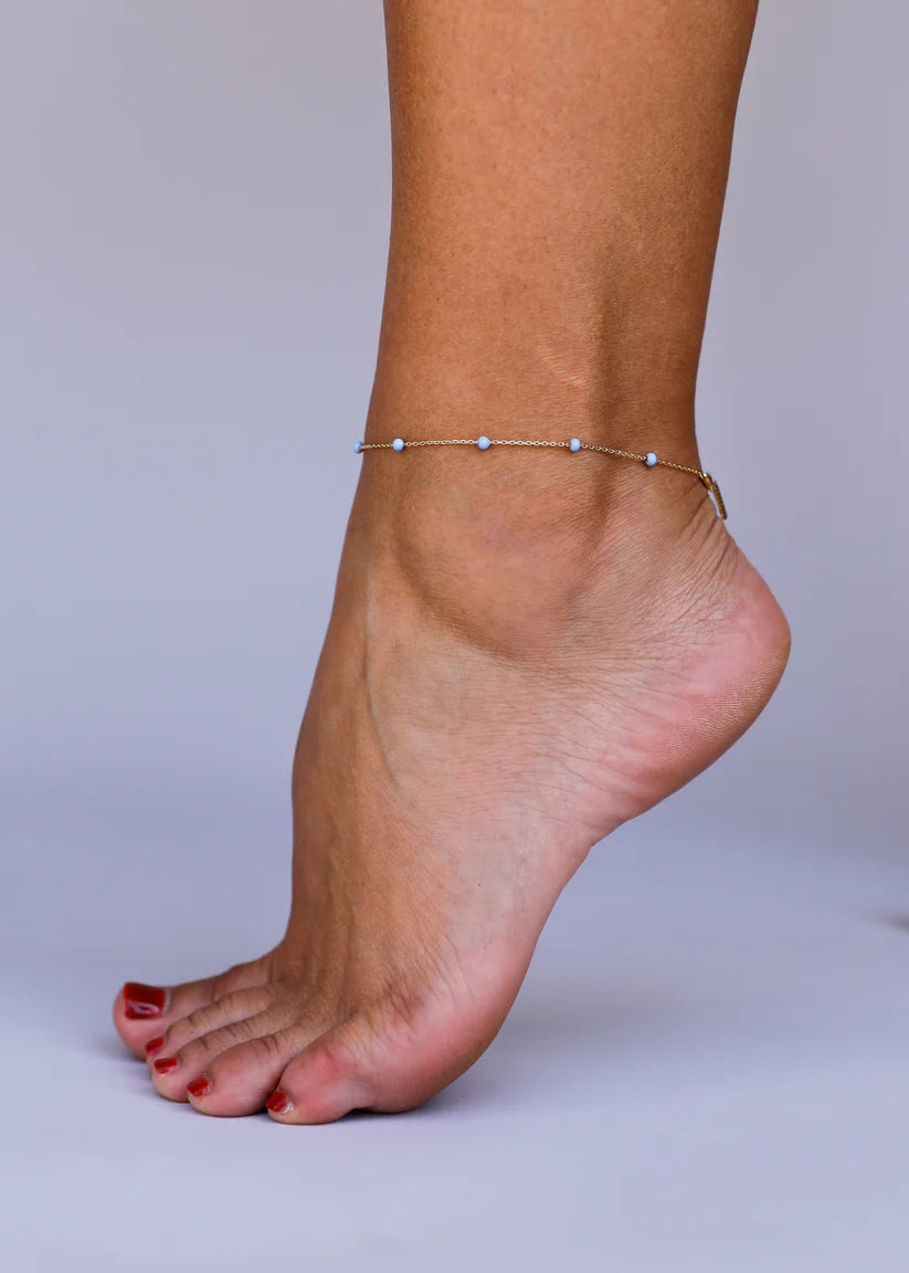 Not your average enamel anklet! This anklet was hand crafted with our diamond cut chain to add a pop of sparkle. Each enamel ball is meticulously hand painted making each piece unique. Our custom design process makes these pieces unique only to JaxKelly.