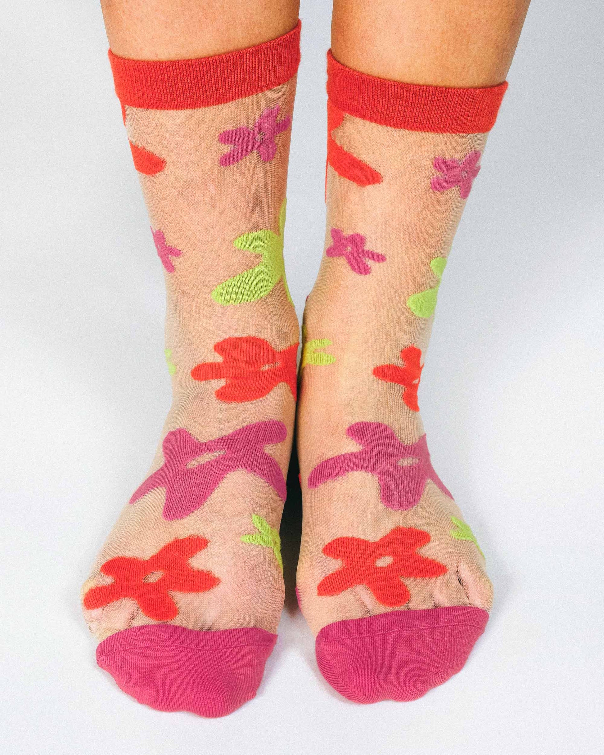 A testament to one of Hannah's inspirations, the Flower ankle sheer sock attributes its groovy design to the vibrant vibes of the 70s. Lightweight with a reinforced heel and toe designed to hug your feet.