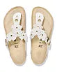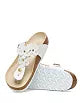 Appliqué flowers make a garden party of this season's Gizeh sandal. Pollinated with gold, especially soft leather sets the scene for cut blooms. The style stays rooted in original BIRKENSTOCK® comfort, with a contoured cork-latex footbed for the ultimate in support.