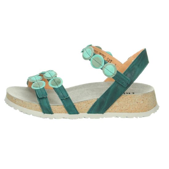 The Think! sandal KOAK is made of especially soft smooth leather. Effect leather details on the straps give the deep footbed sandal the typical Think! look. All three straps are individually adjustable to the foot with a Velcro fastening. This ensures a firm hold in the shoe and the soft leather prevents pressure points. The chrome-free tanned leather lining and footbed as well as the cushioning sole ensure an incomparable wearing comfort.