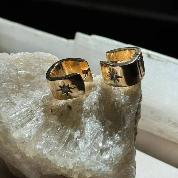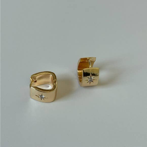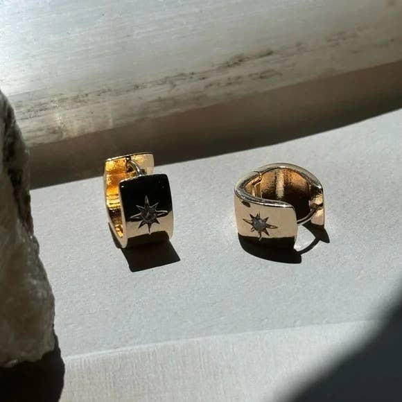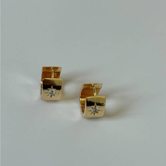 Beautiful dainty high quality 18K real gold plated over brass hoop earrings embedded with clear Cz pave star design