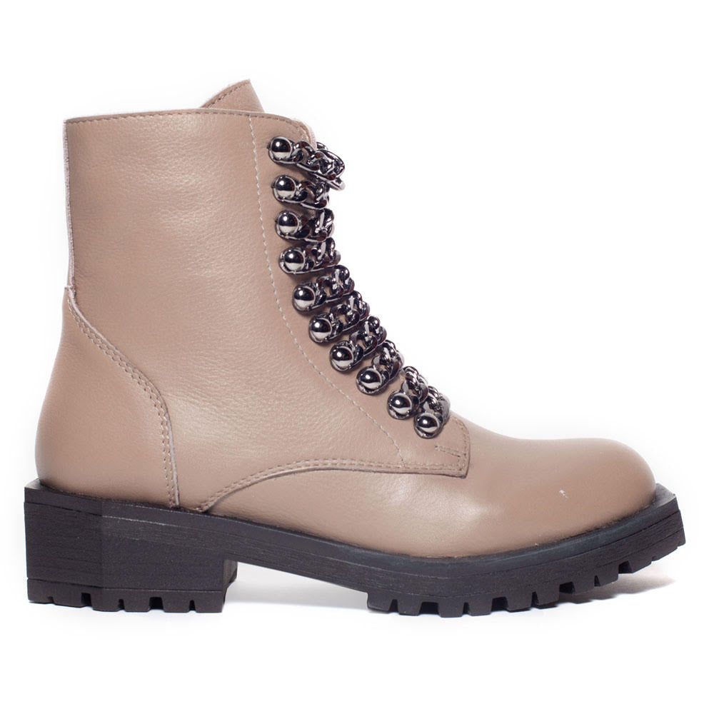 Perfect for the cool winter months, this chunky heeled boot has a side zipper & front laces for perfect adjustability, featured in a versatile light taupe.