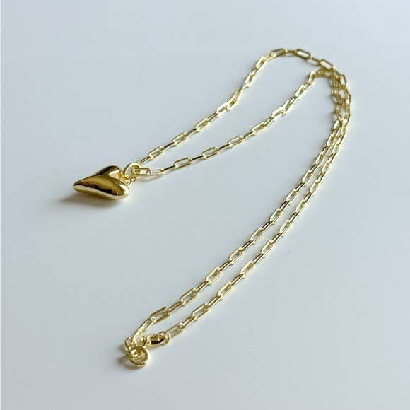 925 sterling silver gold vermeil plated staple chain necklace featuring 24K gold filled heart charms