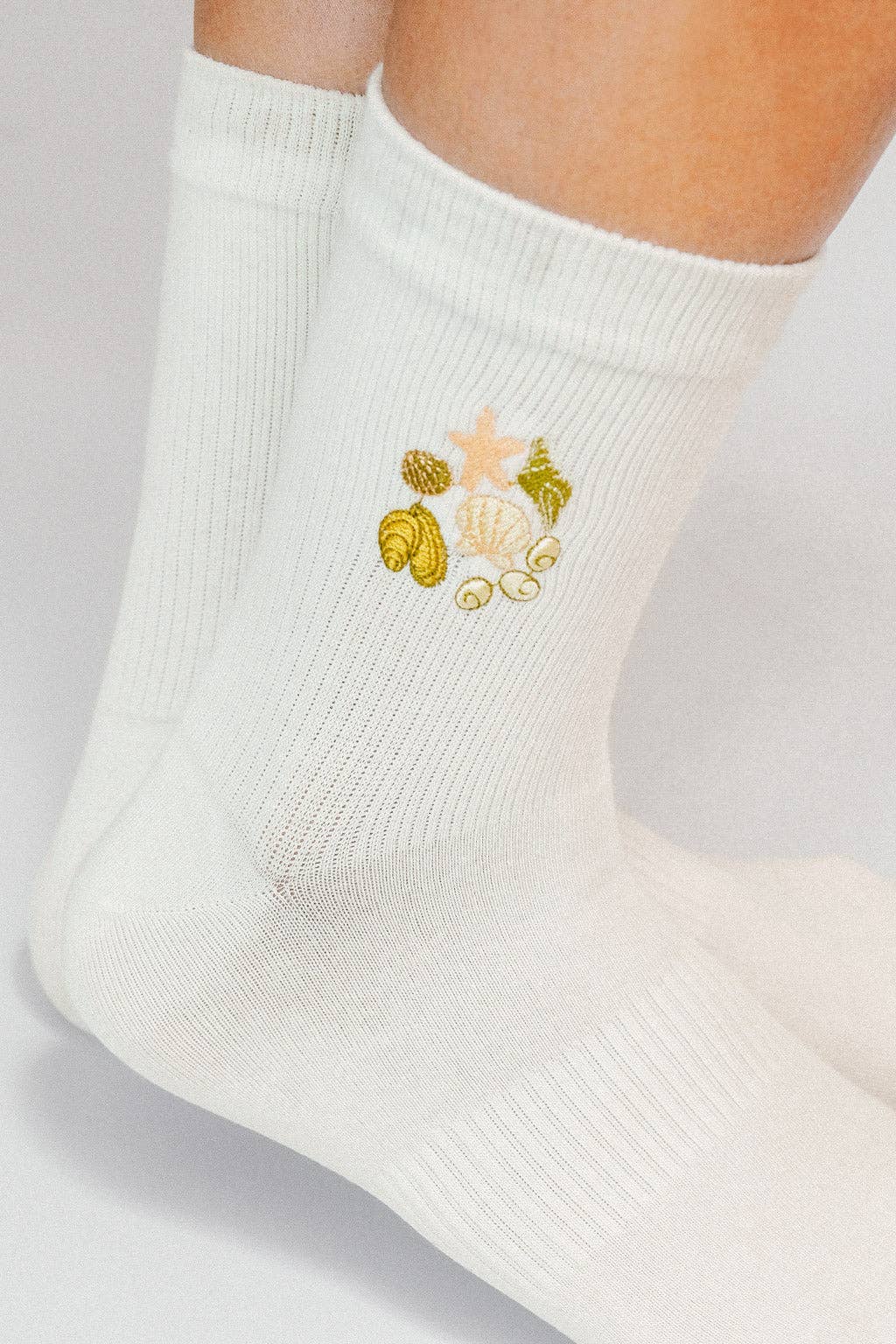 Natalia has a love for the ease found on a beachy coast and that can be found with the Shell knit ankle sock. This sock is lightweight with a reinforced heel and toe designed to hug your feet.