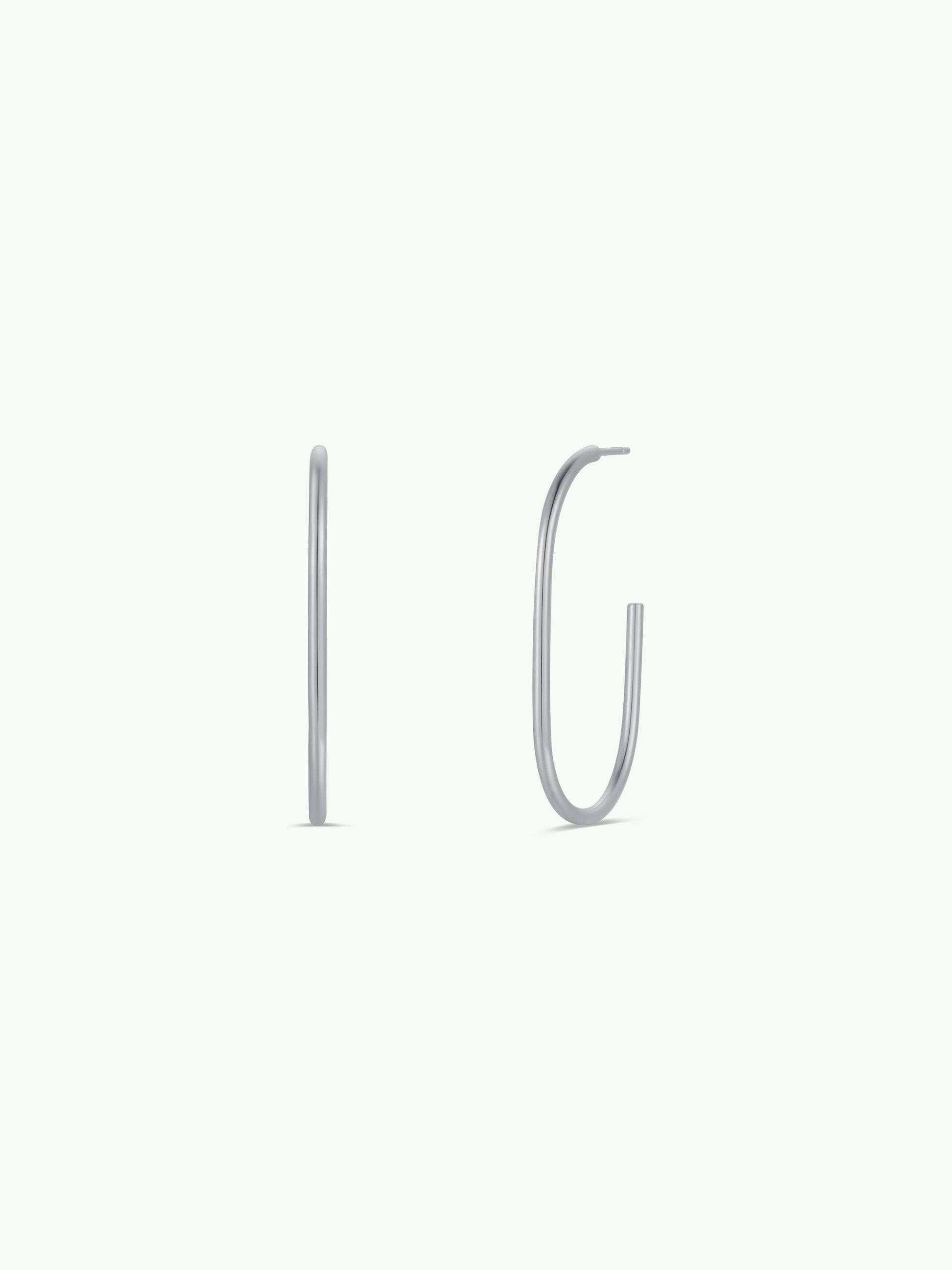 A modern update to the classic hoop, our Silver Long Oval Earrings feature a lightweight, elongated silhouette and a polished silver finish.