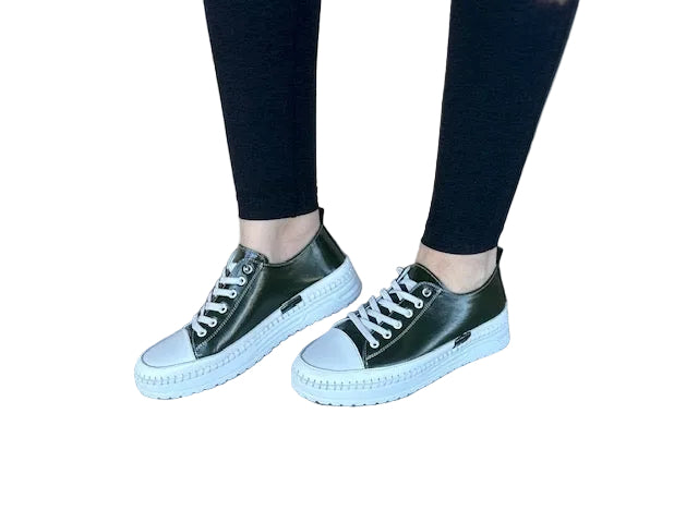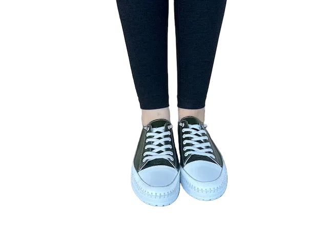 Gelato Skye Khaki Leather Slip On Sneakers are gorgeous – thank you jewel detailing! Featuring an elasticised upper panel right over the instep to keep them secure on the foot at all times. A soft pinpunched leather upper and padded removable insole makes her all day comfortable too. Then there’s that luxe factor coming in the form of the bejewel lace emds down the front… Sublime style, made in Turkey.